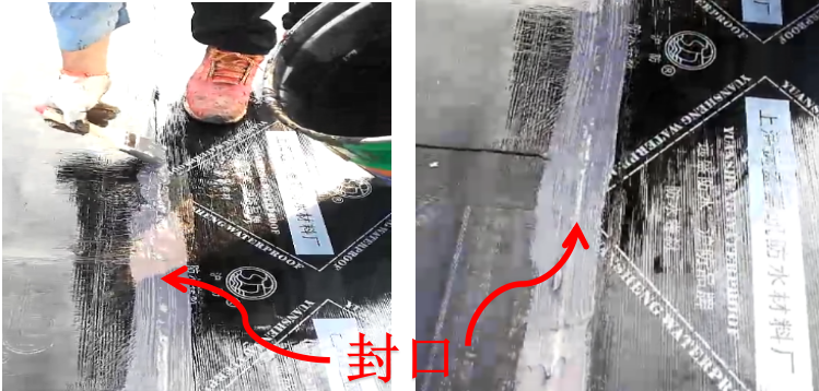 卷材鋪貼后,堅持當天鋪貼的卷材必須當天把所鋪卷材長邊和短邊的外露邊口處進行密封,采用卷材邊口專用密封膠對卷材的外露邊口縫及端頭處進行涂刷密封密實,不漏刷即可。